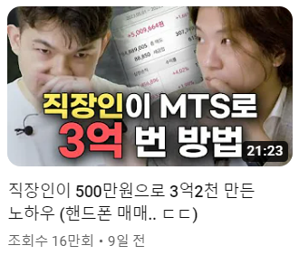 직장인인 인터뷰이는 애널리스트가 되려는 게 아니라 그저 돈을 벌기 위해 트레이딩을 시작한 거였다. 그런데 산업과 종목을 분석하는 데에만 매달리고 너무 깊게 들어가면서 정작 돈은 못 버니 답답함을 느꼈다고 한다. 친구가 그 점을 짚어준 것. 이후 본인의 생각을 배제한 뒤 친구를 따라하며 방향을 잡아갔고, MTS로만 매매해 500만원을 3억까지 불린 직장인이 되어 유튜브에 출연했다. 아래는 해당 영상이다.